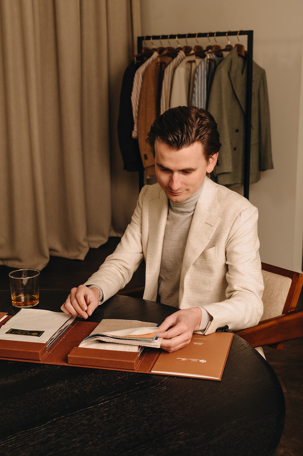Mike creëert een plek waar sfeer en ambacht samenkomen. Hij kent zijn vak, voelt direct aan wat nodig is en weet precies hoe een pak moet zitten. Tijdens je afspraak ontstaat er helderheid: over welke stoffen bij jou passen, hoe details het verschil maken, en waarom bepaalde keuzes langer meegaan. Het resultaat is een garderobe die is gemaakt om te blijven, in kwaliteit en in stijl.