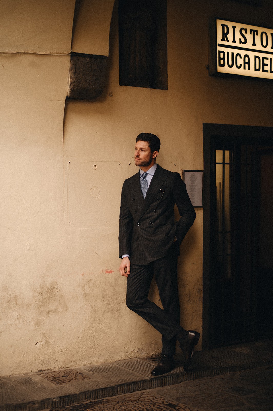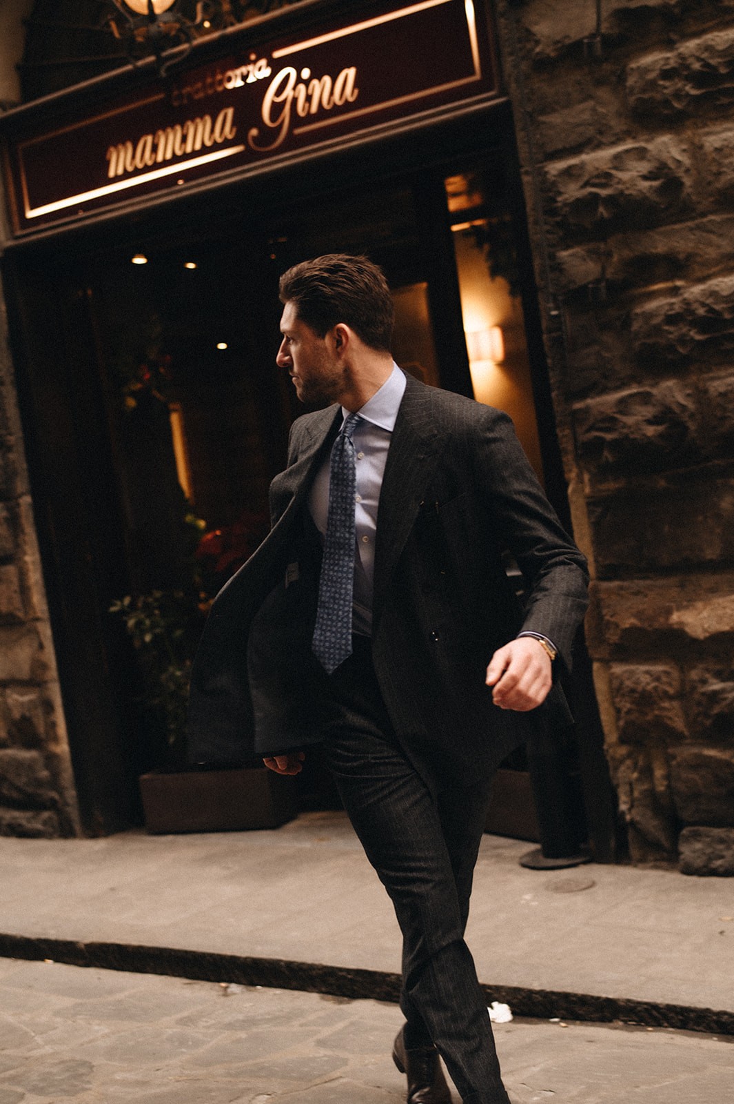 Mijn stijl omschrijf ik als old money style. Een populaire term die de laatste tijd veel gebruikt wordt. Ik word blij van een maatpak en een overhemd dat op maat gemaakt is. Ik heb een goede bouw dus als het goed aansluit, dan word ik daar erg gelukkig van. Ik blijf bij twee tot drie kleuren. Ik houd van monochrome outfits in bruintinten, dus bijvoorbeeld een beige trui met een bruine broek en een andere kleur bruin jasje erop waardoor het goed bij elkaar past. Ik draag veel pakken, maar als ik thuis aan het werk ben, ga ik niet in een overhemd met stropdas zitten, dat vind ik nergens op slaan. In the end gaat het ook om comfort. Dan draag ik het liefst een cashmere- of een kabeltrui, maar wel altijd met een pantalon eronder. De ene keer een wat meer casual pantalon en de andere keer weer meer highwaist met een bandplooibroek. Een spijkerbroek zie je mij eigenlijk helemaal niet meer in. En ik draag altijd loafers, nooit sneakers.”